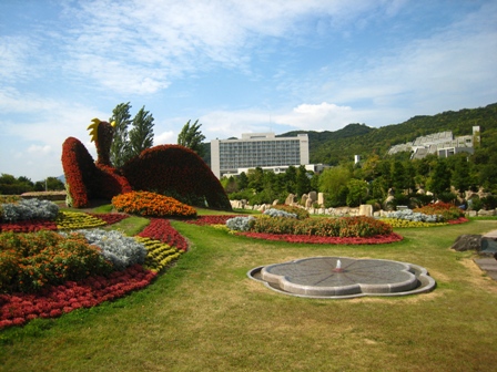 左上の写真の右上に見える淡路夢舞台の百段苑のお花は、時期が悪かったのかイマイチでした。
