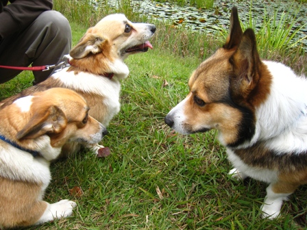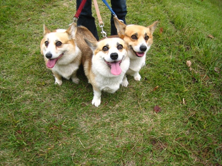 今日は、コーギーの母娘、ももちゃん、くるみちゃん、ゆきちゃんに逢いました。