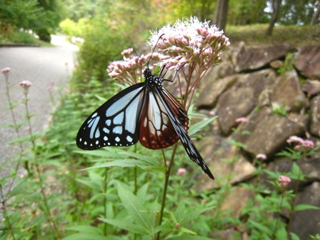あっ そうそう 園内でフジバカマの蜜を吸うチョウ アサギマダラに出会いました。