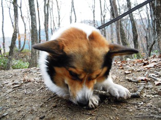 さすけと山の麓の散歩道 山は少し紅葉 山の色と青空に見とれてみたり…