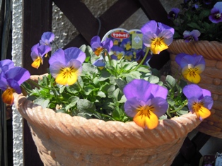 かこさんのお家の前を通る人は、毎日きっと楽しみなはずです。パンジーもビオラもこれだけの数(?)量(?)だと、ゴージャス。