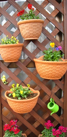 ラティスは先日塗りなおし、ビオラのお花を飾りました。