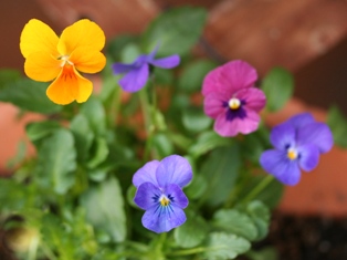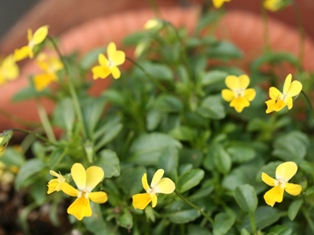 ビオラはちょっと徒長してしまって、この後、芽をチョッキン。次のお花はいつ頃になったらいっぱい咲いてくれるかな?