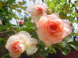 こんな晴れ間に似合う愛らしいミニバラ「ラブリーモア」が咲きました。