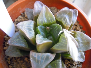 外側が寒さにやられた ↓ ハオルチア属ウンビラテイコラには蕾、ブルージー ↓ にも蕾です。