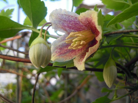 鉢植えの秋冬咲きのクレマチス 日枝が咲き始めています。