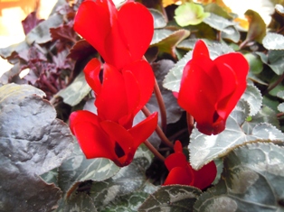 一年前のガーデンシクラメンが今頃になって少しだけ咲くようになりました。