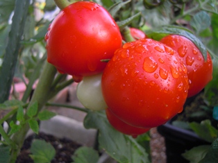 ルビーネックレスは、その名に程遠く、まだ短め さすけの楽しみ、鈴なりバンビ(ミニトマト)