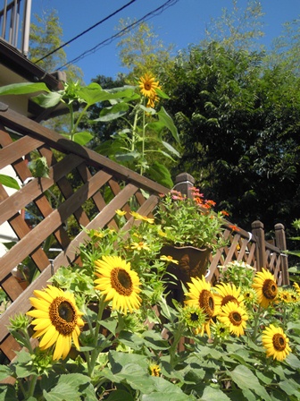 itatchiさんへ 大輪ヒマワリは、大きなものを抜いたので寂しいことになっていますが、ミニヒマワリは、今日はもっと賑やかになってきました。有終の美となるのでしょうか。