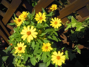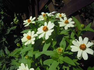 ジニア・プロフュージョンの白と黄色、だいぶ咲いてきました。