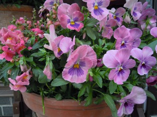 右上の「名無しのさくら草」は、花びらの外側がピンクで内側が薄いピンクのものと、白いお花を一緒にプランターに植えています。気にしなくていいぶん気が楽、そのほうがよく育って花数も多いです。