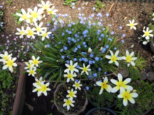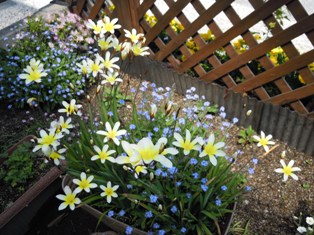 ブルーデージー、姫キンギョソウ(リナリア)黄と白、アリッサムの白