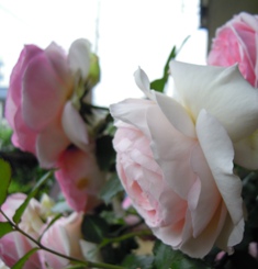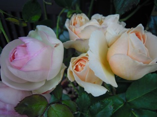 開きかけの下のお花もすぐ開きましたが、一度に3個咲くと、ちょっと窮屈、大輪のバラですが、少し小さめに咲きました。