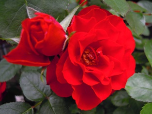 とても可愛い「シルキーピンク」、赤が眩しい「レッドシンフォニー」うまく写真に撮れません。