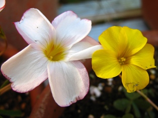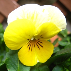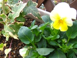 上にはヘデラと白に黄色のビオラ。
