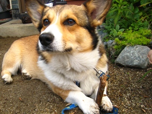 土の地面のこの場所はさすけもお気に入り、散歩の後はここで休憩が日課です。