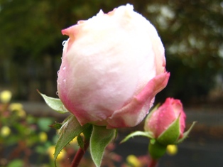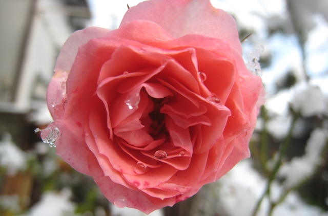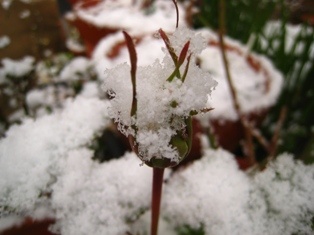ミニバラ粉粧楼も、私が楽しみにしている挿し木のバラの蕾にも雪~ これからの寒さ、開花できるまで頑張ってくれるでしょうか?