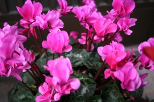 では、今日はピンクのお花、キンギョソウとガーデンシクラメンです。