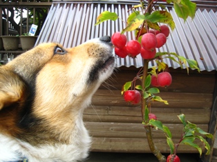 鉢植えのクラブアップルの実はしっかり熟してきましたが、さすけが外にいなくても鳥達は食べにやってきません。雪が降るようになったらきてくれるのでしょうか?