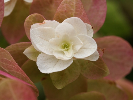 そう、柏葉アジサイのお花、白から だんだんと色づいてきました。今年の柏葉アジサイは、日差しと雨で痛んでしまいました。これは綺麗なのを選びました。