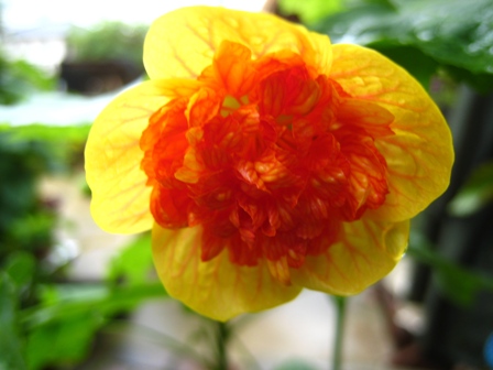 小さな苗でお迎えした アブチロン シャスタ が 咲きました。