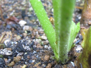 来年の花芽となる茎を地面から5本くらい出していましたが、最近の大雨で枯れてしまい、残るは、あと1本になりました。このお花は根元に太陽があたれば、きっと毎年咲かせてくれるのではないかと思いますが、この雨、ジメジメはこの場所ではダメだったようです。