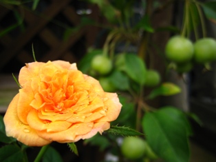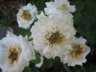 レナータとロザリーシリーズ(後ろに写っているのは、クラブアップルゴージャス)が咲いています。