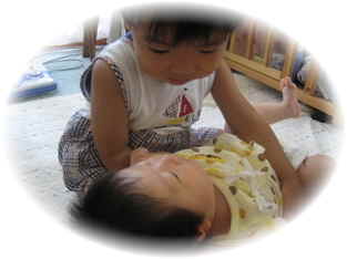 孫1号ゆっぴーは1歳10ヶ月、やんちゃぼうずも、孫2号あーやを見つめる姿はいつもと違い、やさしくなります。