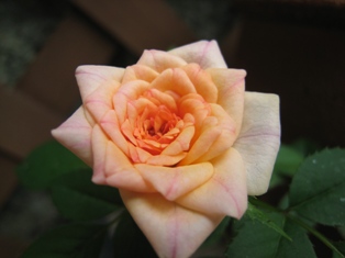 庭ではミニバラ ニコラが夏の暑さで一重になりましたが、咲いています。