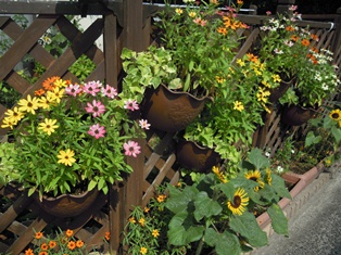 ラティスに掛けたジニア・プロフュージョンのお花も色あせてきましたが、先日道行くオジサンに「ここは、いつも綺麗じゃのう。特にこの花が目立つで。いつも通るのが楽しみよ。」言われました。