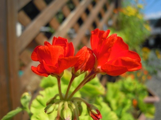 ジニア・プロフュージョンから空を見上げてみました。こちらは、↓ ゼラニューム 赤が眩しい!