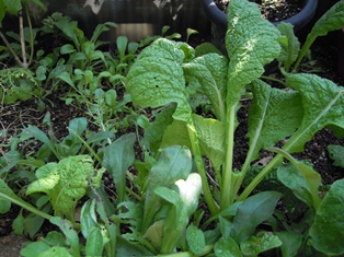 うまく育てばの話ですが、今のところミニヒマワリの陰になっています。