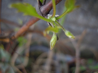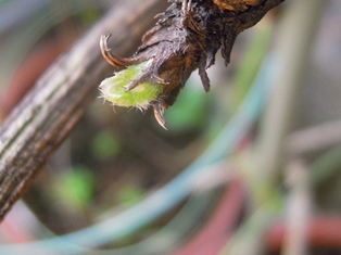 秋冬咲きクレマチス シルホサに蕾 ↓ 日枝も少し動き始めています。枯れてないね。