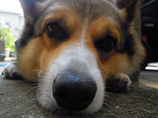 さすけ 今日もお散歩 帰ったら小屋に入らず、隅っこ