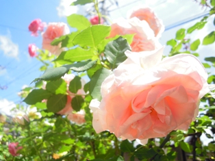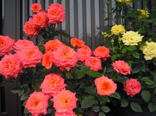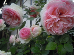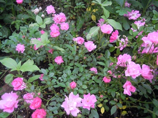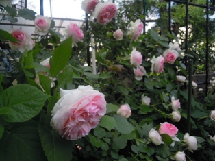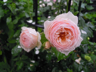 鉢植えのバラたちはうなだれたり、散ってしまいましたが、この場所に咲くピエール・ドゥ・ロンサールとレディ・メイアンディナは、花もちがいいので長い間楽しませてくれています。
