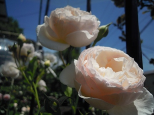 イングリッシュローズ エブリンとザ・ピルグリムはいっきに咲き、あっという間にほとんど散りました。雨にもうたれたので、ゆっくり見ていない… 次に期待しましょう。