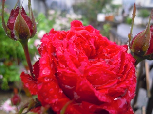 やっと咲き始めたのはレッドモンテローザ・フォーエバー ↑ 赤いお花でカップ咲き、ミニバラの仲間とは思えないほどの大きなお花、花もちもとてもよくて、茎もしっかりしています。以前、花弁を数えたことがありますが、100枚ちょっとありました。接ぎ木のしっかりした苗だったので、こんないいお花が咲いてくれるのかな?ピンクも欲しいと思っていますが、なかなか出合えません。