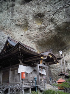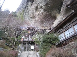 ↑標高700mの切り立った断崖中腹にある第45番札所岩屋寺です。