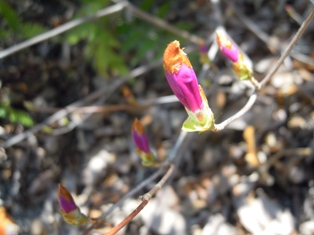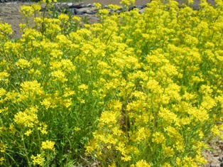 畑の水菜のお花 山の麓では、やっとミツバツツジの蕾が…