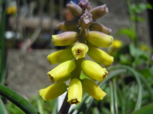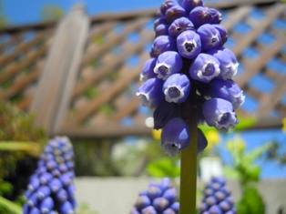 甘い香りのムスカリです。昨年芽だし球根で買ってきて、今年のお花は1本。