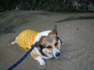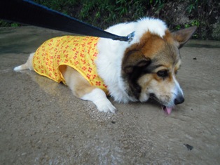 今日は、山の麓は歩きたくないとは思ったものの、犬友達のお兄さんに出会ったので、やっぱり山の麓。山からは土が少し出て、道路には水が流れ出しています。