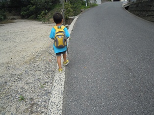 来た道は、木が茂って暗いところがあるので、怖いようなので自動車道を下りました。