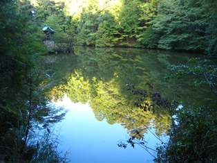 金亀池は、今日も鏡のように、空と樹を映し出していました。