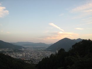 日も短くなった今の季節、あわてて下山、展望台からの町並みと夕焼けです。