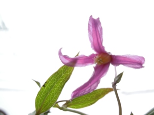 クレマチス 花島からの朝の曇り空、そして、白花のキキョウが咲き始めました。
