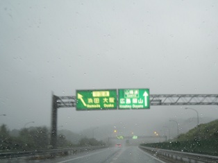 帰り道は中国自動車道、車の中から撮ったどしゃ降りの雨です。