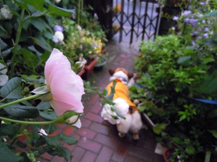 庭では、薔薇ブライダルピンクの二番花が咲き始めました。