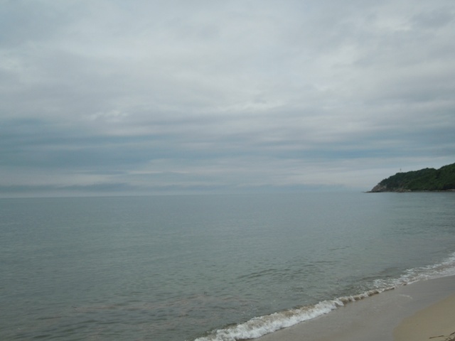 あいにくの曇り空で、海はこんな色