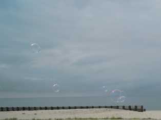 シャボン玉、見えますか?お日さまがあたっていると、もっとハッキリ見えたかもしれませんが、遊んでみました。(左下)