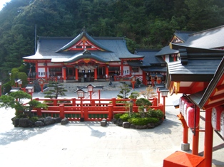 下から見ると、赤い鳥居が目立つところです。神社から下を見下ろしていると